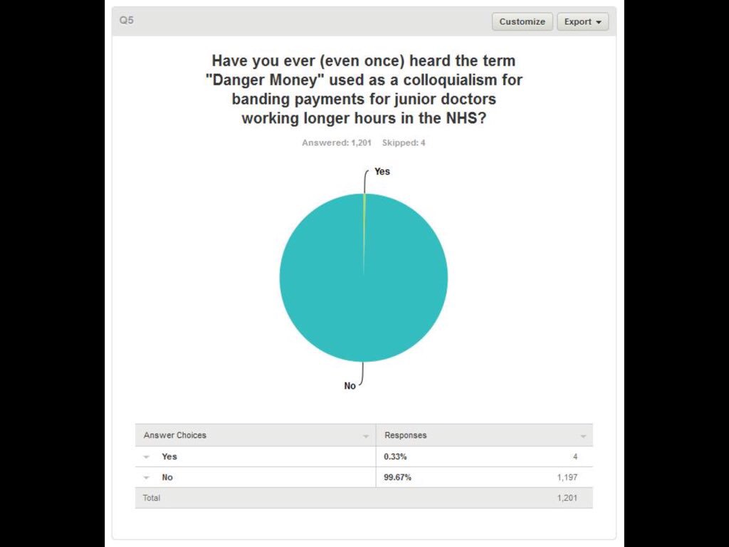 - Claiming #Dangermoney is a ‘colloquial‘ term in the NHS- despite 99.67% of 1201 doctors surveyed never having heard the term.