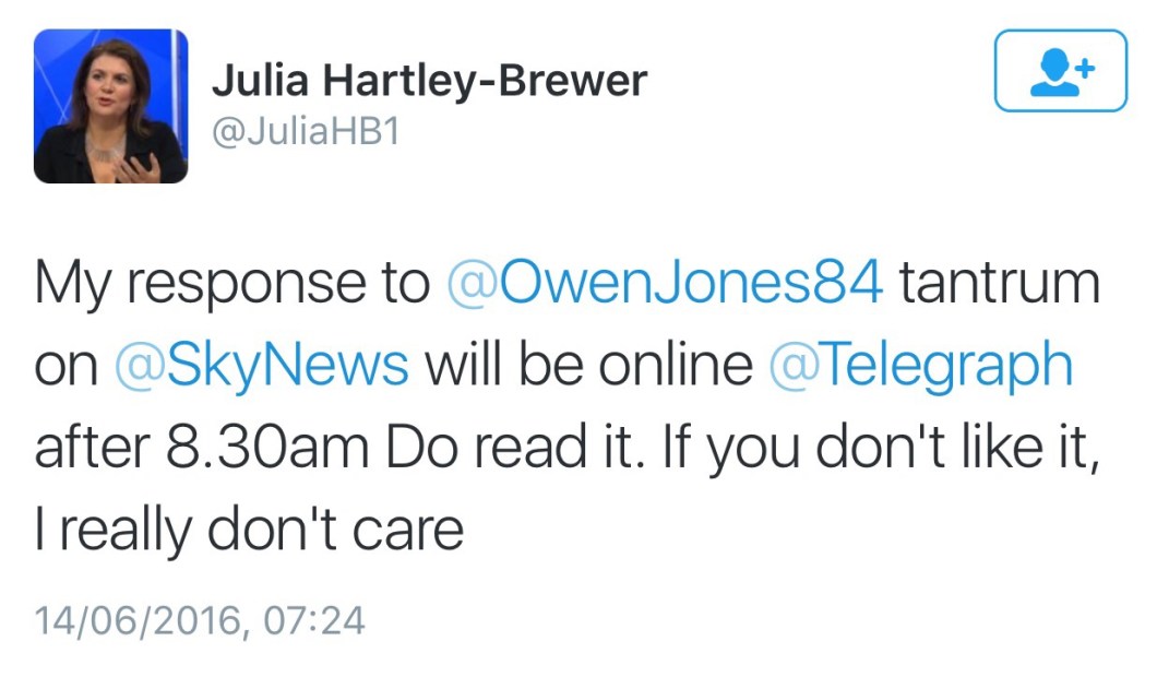 I got into a not quite Twitter war with Julia Hartley-Brewer recently, more of a Twitter scuffle, if you will.